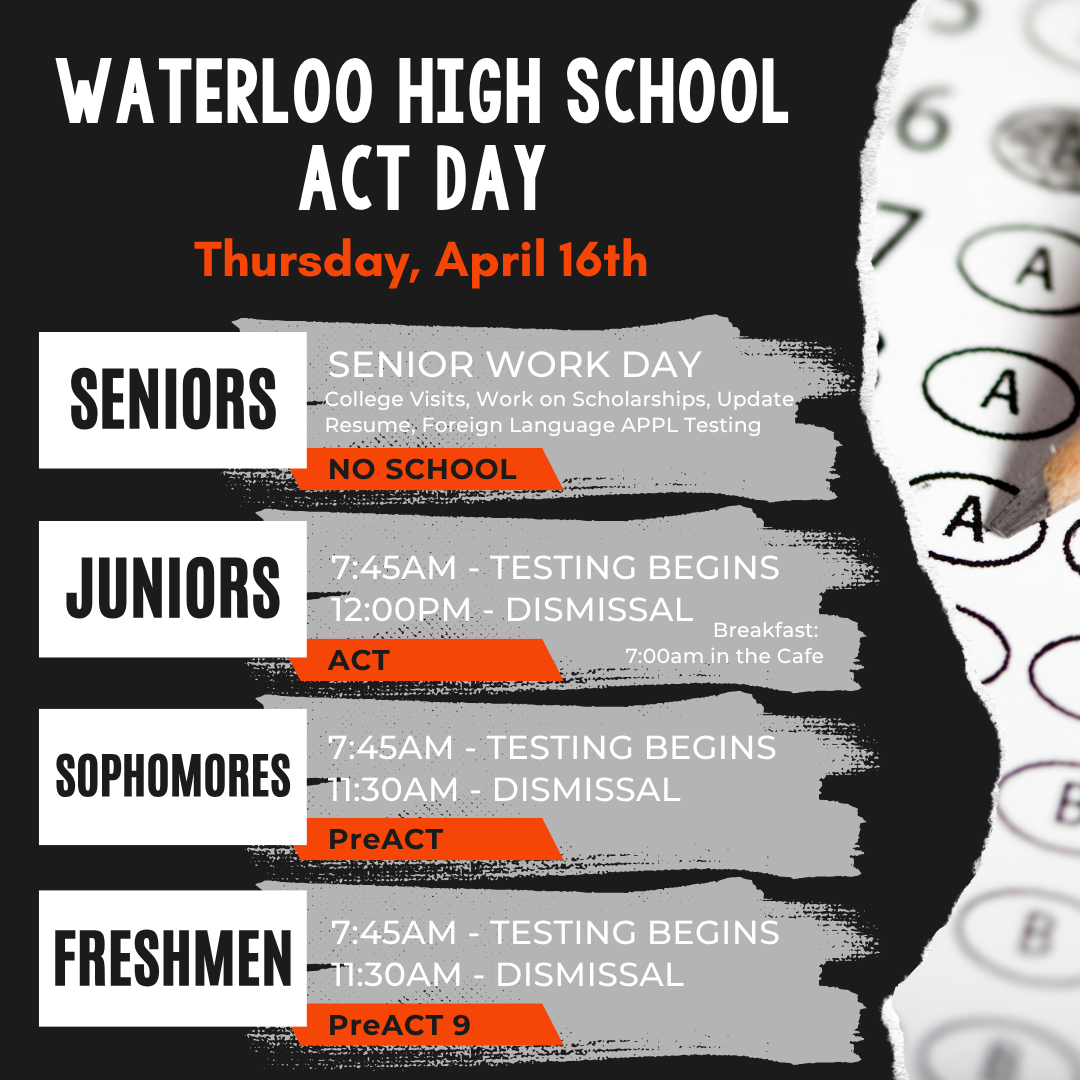 Testing Day is coming up on Thursday, April 16th! Please review the schedule in the attached graphic so you know what to expect for your grade level. Dismissal times are approximate.Important Remin...