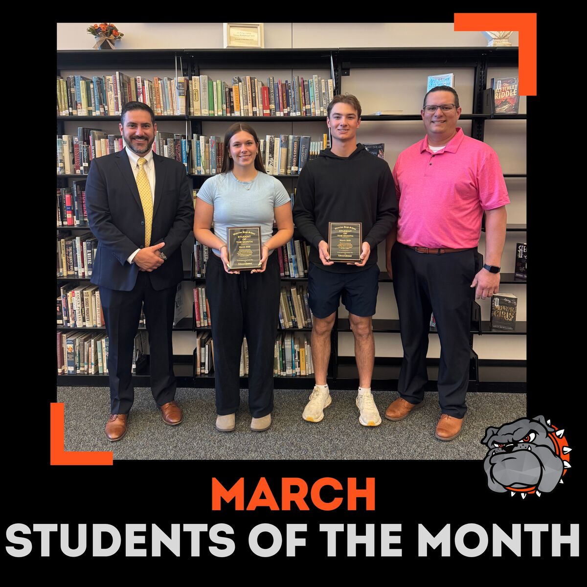 Congratulations to the March Students and Staff of the Month! Seniors AJ Brown and Conrad Lindhorst were awarded, as well as Mr. Huffman. Thank you to Dustin West for sponsoring. Go Bulldogs!