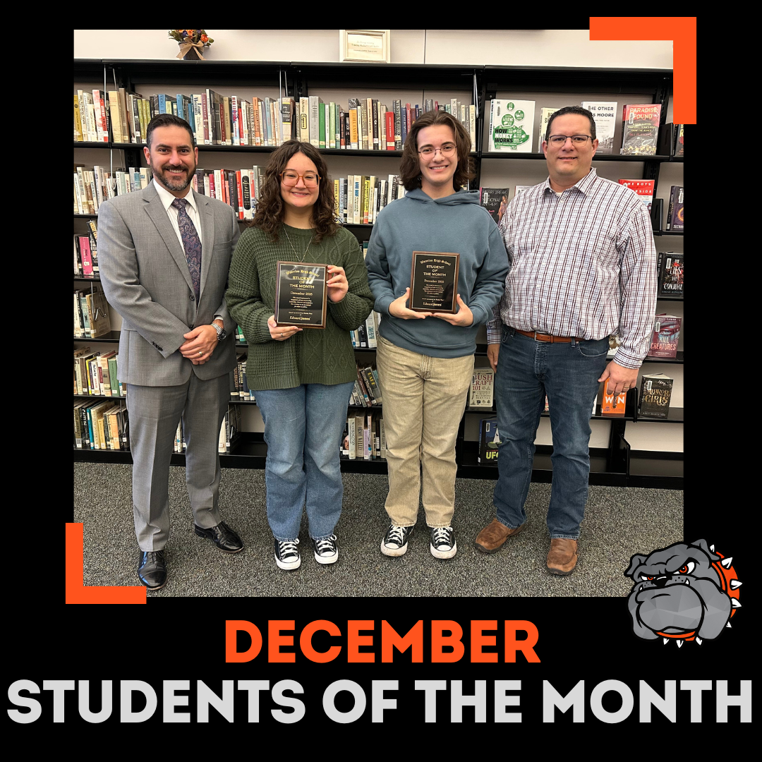 Congratulations to the December Students and Staff of the Month! Seniors Sydney Nonn and Drake Burgdorf were awarded, as well as Mr. Biffar. Thank you to Dustin West for sponsoring. Go Bulldogs!