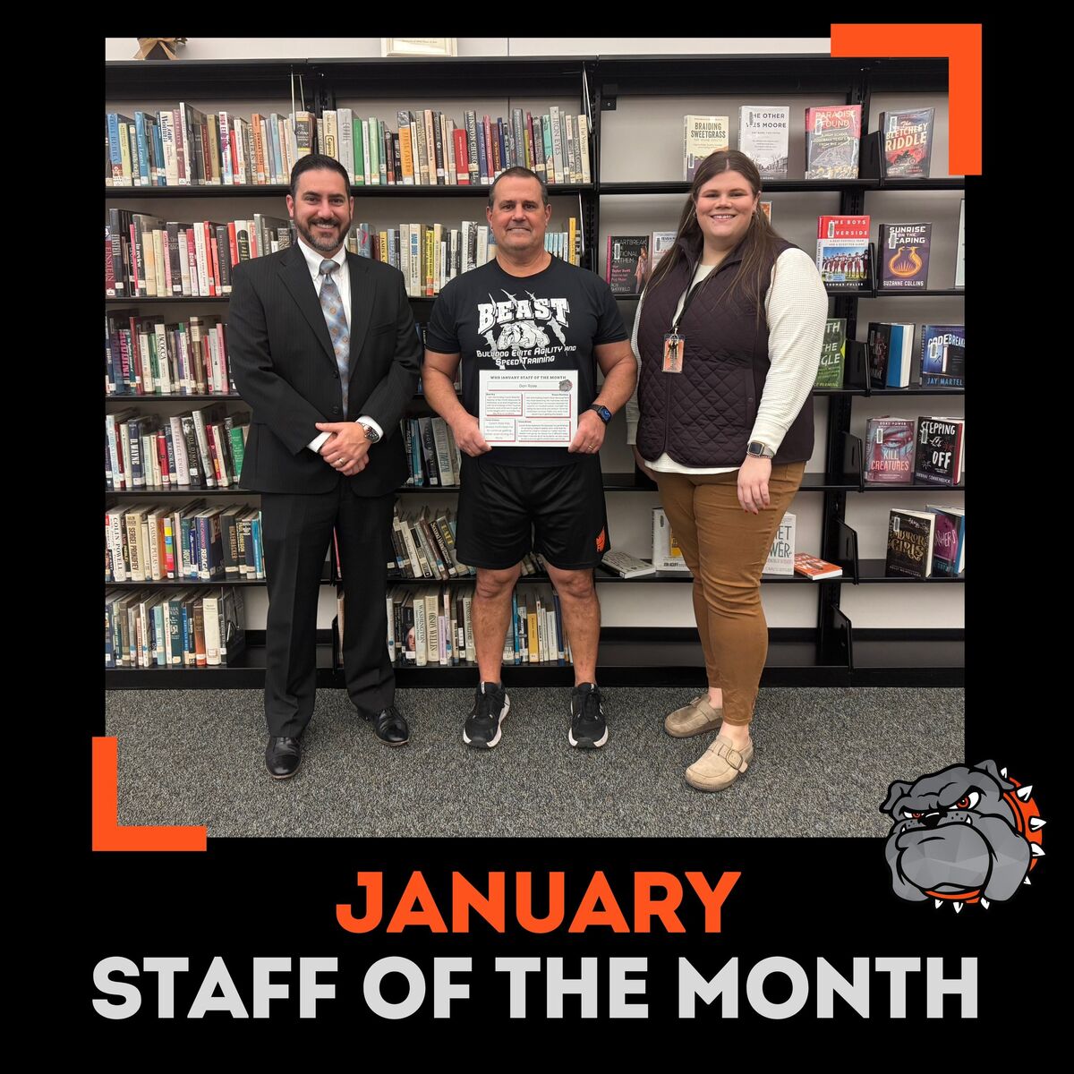 Congratulations to the January Students and Staff of the Month! Congratulations to the January Students and Staff of the Month! Seniors Iris Adkins and Brice Ahrens were awarded, as well as Coach Rose. Thank you to Dustin West for sponsoring. Go Bulldogs! January 13, 2026